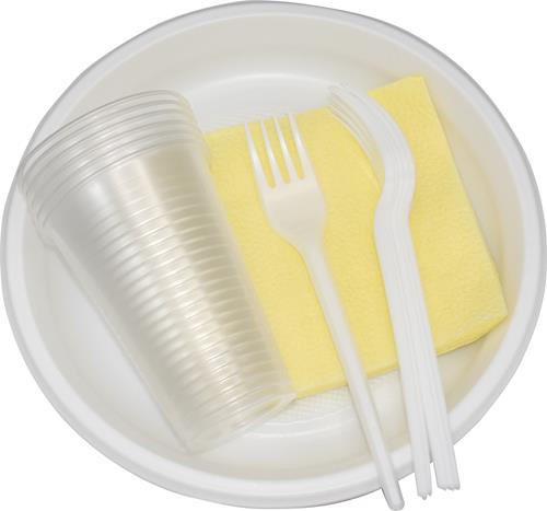 Набор посуды подходит для холодных и горячих блюд. Находится в индивидуальной упаковке с удобной перфорацией для вскрытия пакета. Изготовлен из высококачественного пищевого полистирола, безопасного для здоровья. Не выделяют вредных веществ при контакте с едой и напитками. Можно использовать с горячими блюдами до +70 градусов Цельсия.